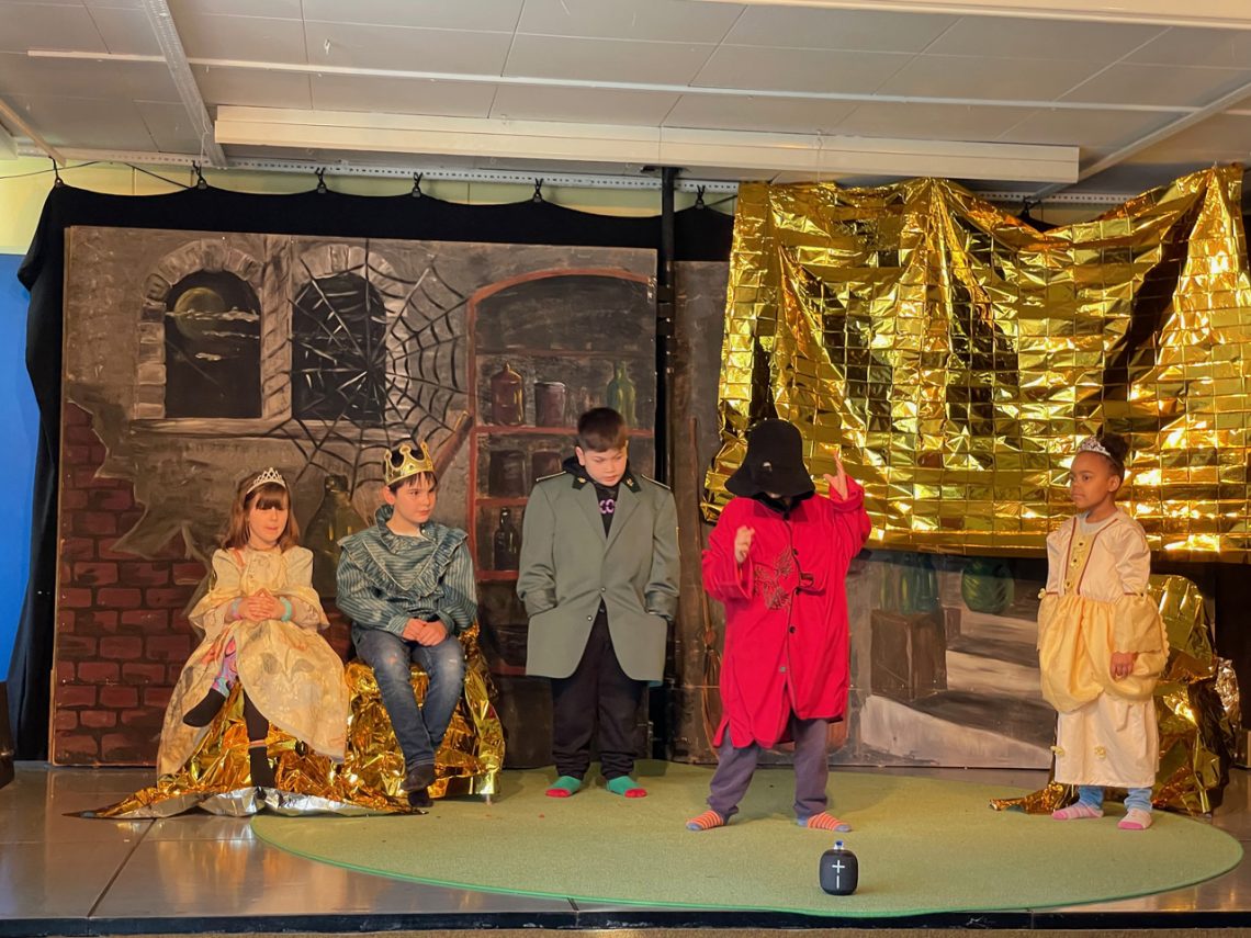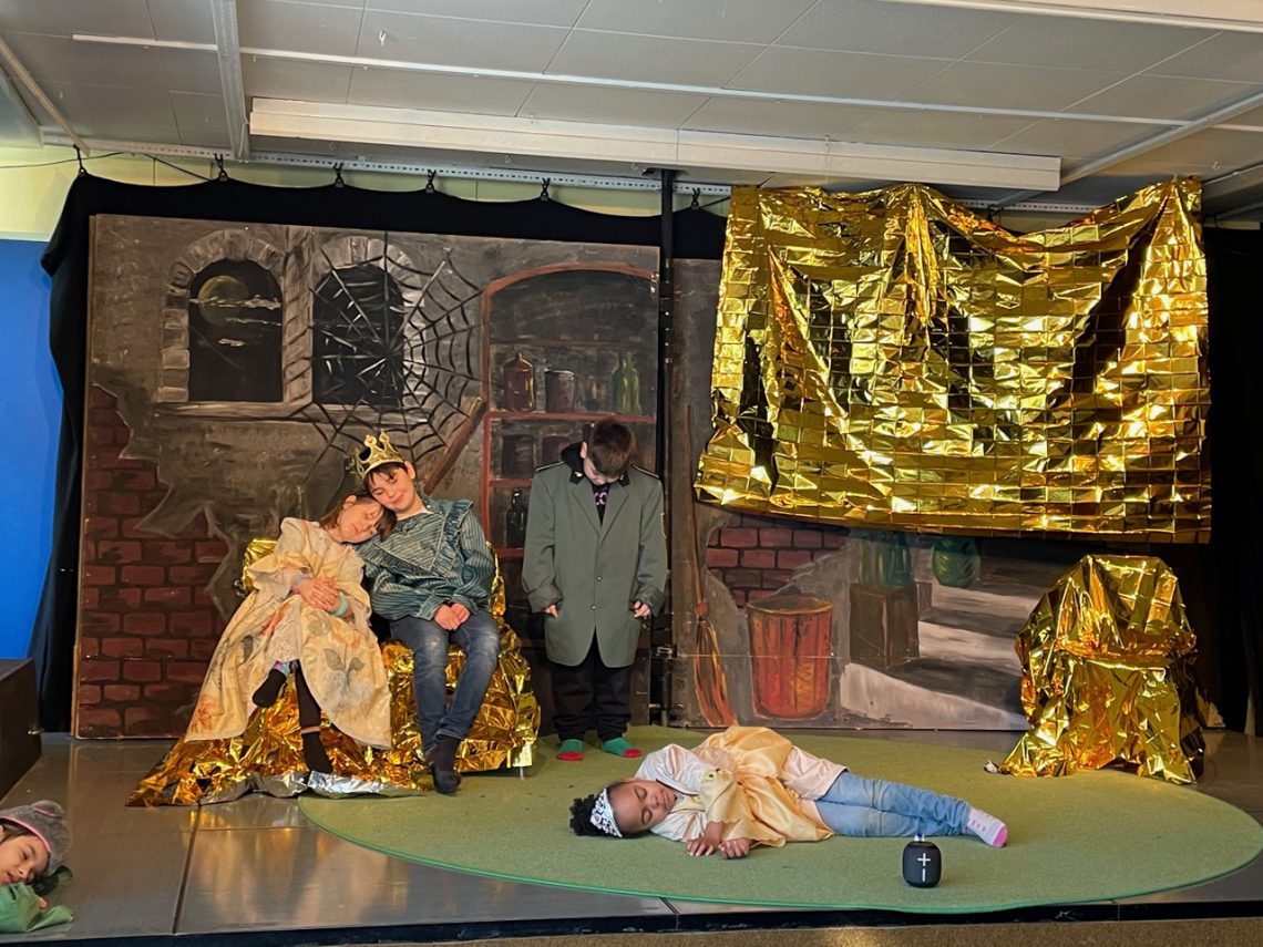 Im Rahmen der AG-Zeit hat die Lerngruppe 123e das Märchen-Medley „Dornröschen zweimal wachgeküsst“ eingeprobt und aufgeführt. Leider konnten die Schülerinnen und Schüler das Theaterstück aufgrund der aktuellen Corona-Bestimmungen nicht vor richtigem Publikum aufführen. Deshalb zeigen wir euch hier Bilder von der Aufführung, und Gianluca beschreibt euch, worum es in dem Stück geht: