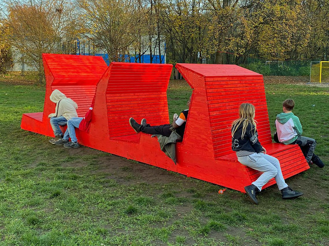Der Erlös aus dem Kaffee- und Kuchenverkauf stiftet der Förderverein für das Projekt “Bau einer weiteren Sitzskulptur auf dem Schulgelände“. Bereits in der kommenden Woche gehen Campus-Schüler*innen mit dem Künstler Thomas Wienands ans Werk. Ein erstes rotes Sitzmöbel aus diesem Projekt steht auf der Wiese am Beach-Feld.