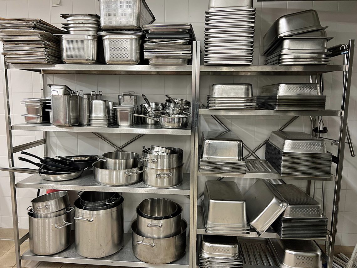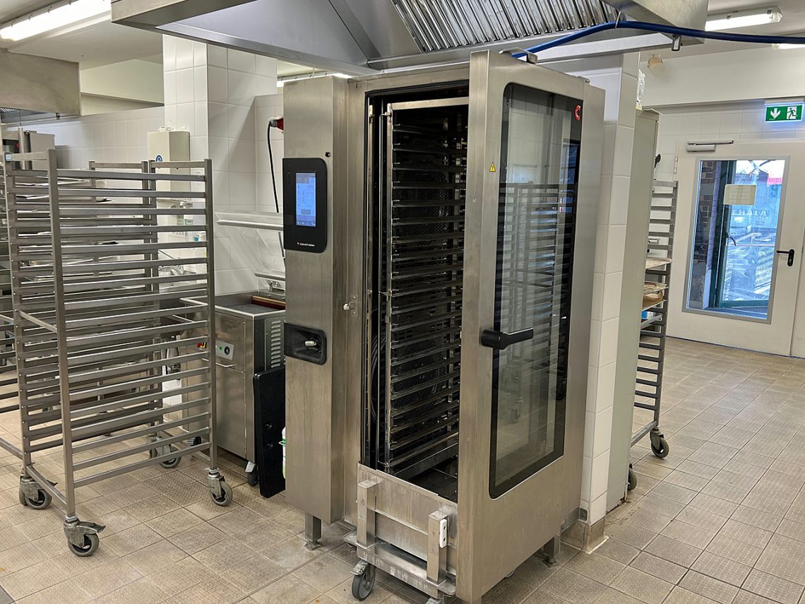 Das Zubereiten des Schulessens nimmt einen ganzen Tag in Anspruch, erzählt uns Herr Wewer. Die Frühschicht in der Küche beginnt um 7 Uhr, etwas später kommen die Spülkräfte und um 16:30 Uhr die zwei Fahrer, die das auf unter 4 Grad Celsius heruntergekühlten Essen an die Schulen ausliefern. 20 Bleche in mit Plastikfolie umwickelten Rollwagen sind es jeweils für die rund 300 Kinder am Campus, die das Essensangebot in Anspruch nehmen. Kurz nach Mitternacht haben die Fahrer die letzte Schule auf ihrer täglichen Runde beliefert. Dann haben die Köch*innen ihre Küche schon längst selbst geputzt.