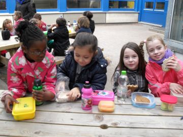 In der schuleigenen Mensa nehmen alle gemeinsam ein gesundes Mittagessen ein. Daran schließt sich eine aktive Bewegungsphase im Mittagsband an.
