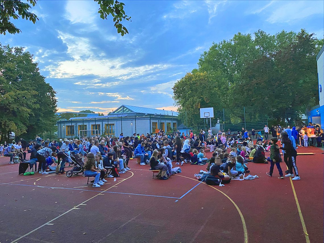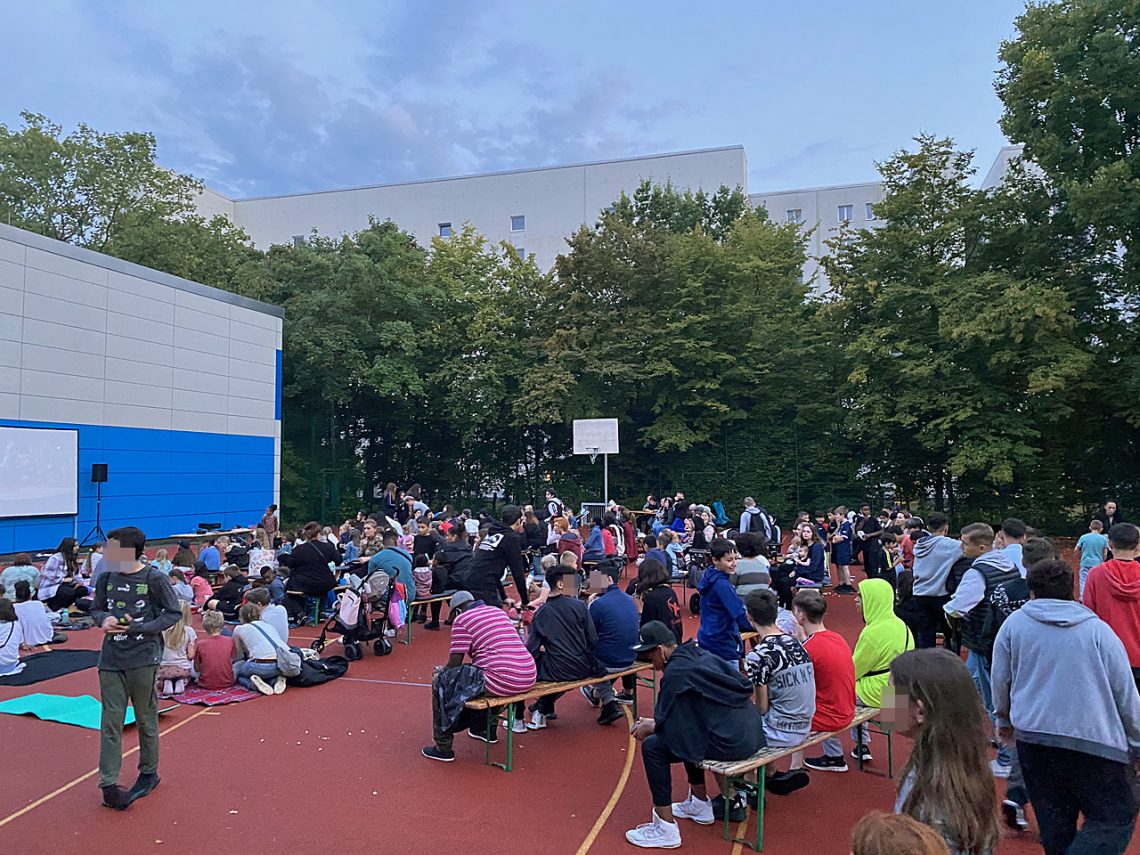 Rund 300 Kinder, Eltern und Freunde waren am vergangenen Freitagabend zum Viertelkino auf den Campus Hannah Höch gekommen. Auf dem roten Platz neben der Sporthalle ließen sie sich bei Popcorn, Eis und kühlen Getränken zwei Stunden lang von dem jungen Aladdin, seinem Affen Abu, dem Lampengeist Dschinni und der Prinzessin Jasmin verzaubern.