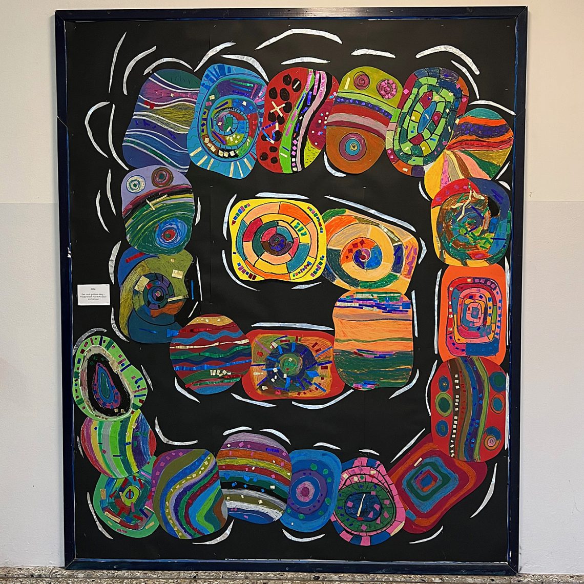 Seit den Weihnachtswerkstätten können an den Wänden in den Treppenaufgängen im Haus 1 wieder neue künstlerische Arbeiten der Grundstufen-Schüler*innen bewundert werden. Alle Wandgestaltungen eint die Beschäftigung mit dem diesjährigen Motto am Campus: